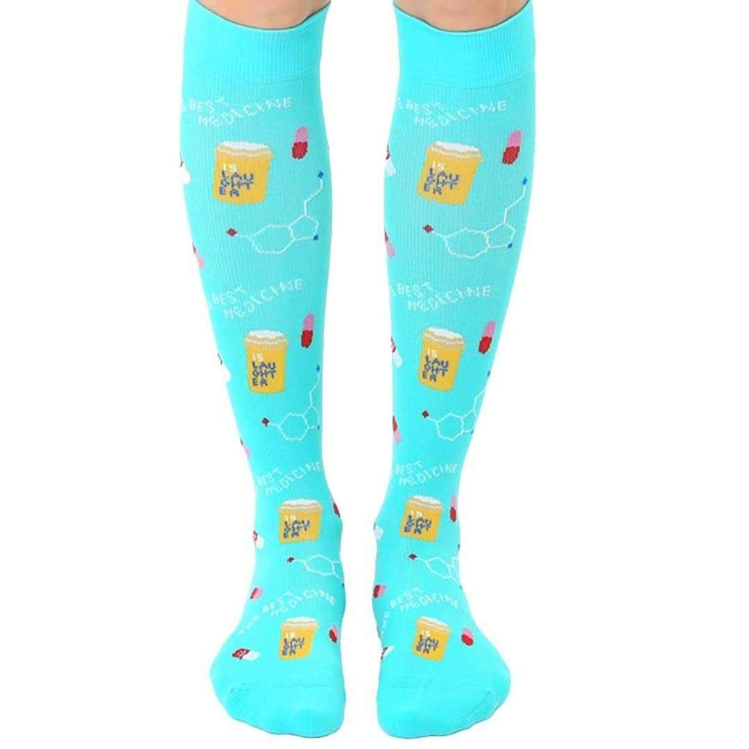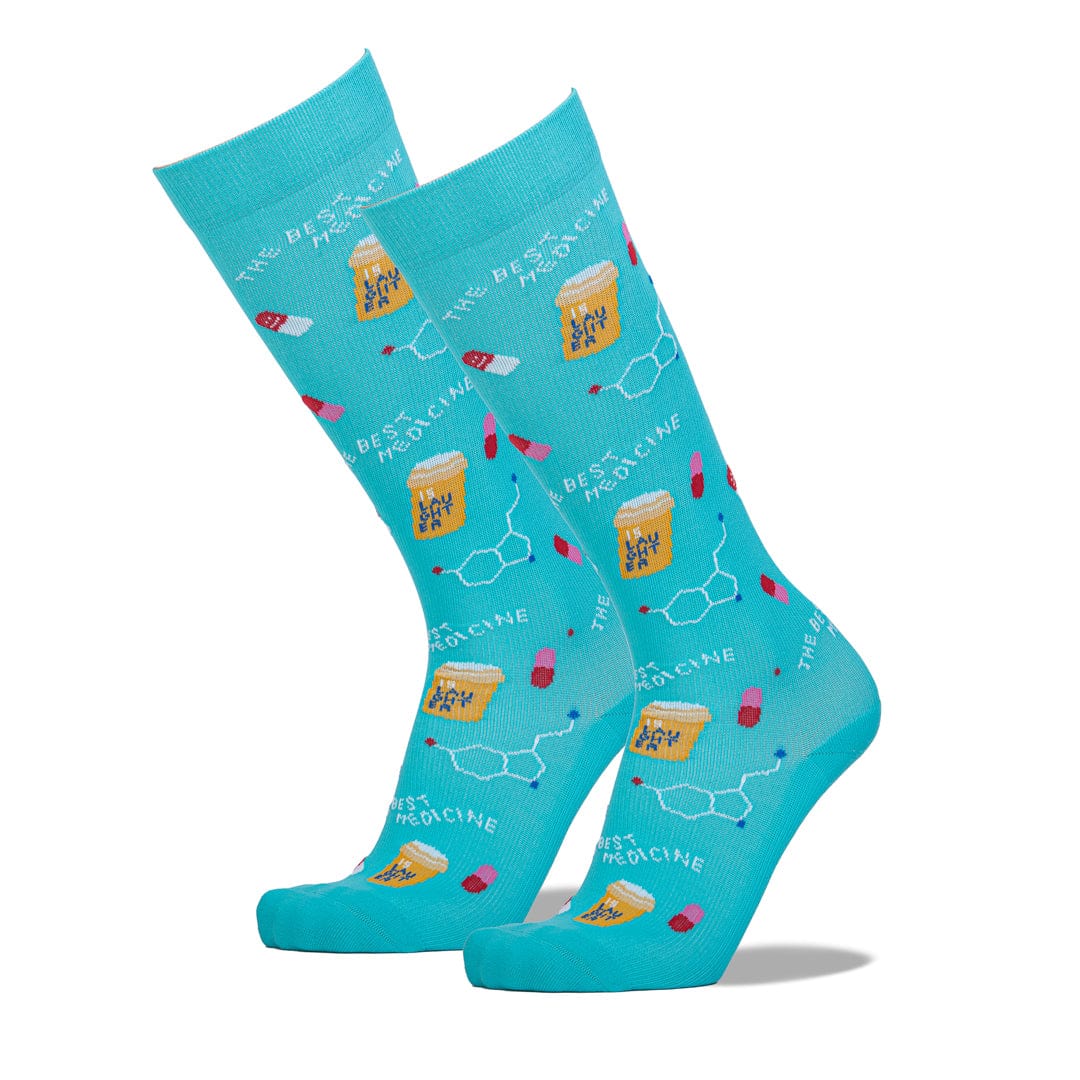 Finally some compression socks with style! These socks say "The Best Medicine is Laughter" which is so true nowadays! We all need a reminder that spending time with friends and family and having a good laugh can make so many of our day to day stresses go away.  Gift these to your favorite nurse, teacher, or traveler today!