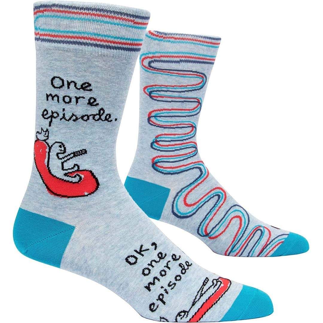 The phrase "One More Episode" is written in script on the outside of each sock so everyone can admire your style!