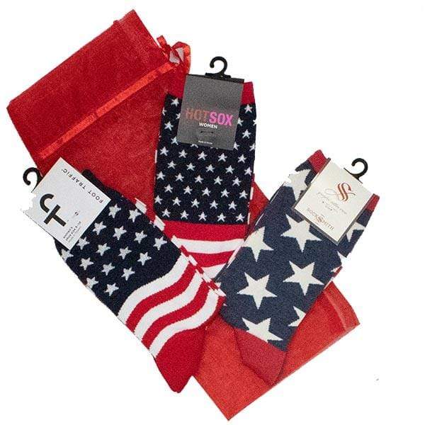 Sometimes you want everyone to know that you love the USA. For those times, we have our Patriotic Gift Bag of Socks for Women. Full of the red, white and blue, these socks will have you swelling with pride. This bag includes three crew socks that show your love of the United States. Each Patriotic Gift Bag of Socks for Women comes with a thank you not from John. Since we donate 5 percent of earnings to the Special Olympics, you’ll be helping a good cause.
