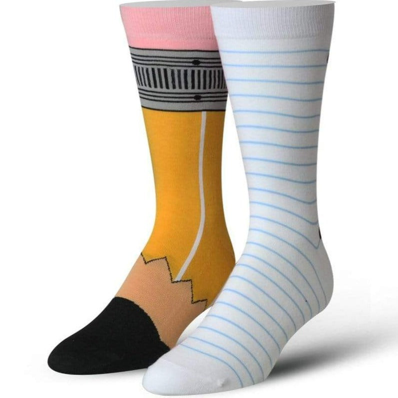 They may be mismatched, but they go together perfectly.  You always need one with the other, so why not show off in our Pencil and Paper Men's Crew Socks