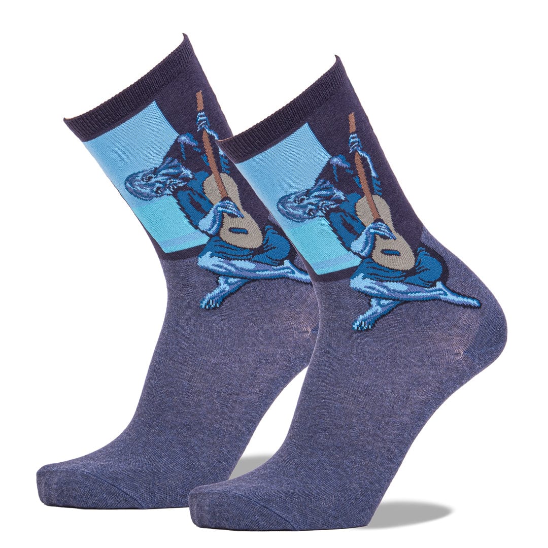 Beautiful work of art expressed on these Picasso's Old Guitarist Socks Show off your artistic flair by adding these to your wardrobe. These socks show the elderly musician  playing guitar on the streets of Barcelona, Spain.