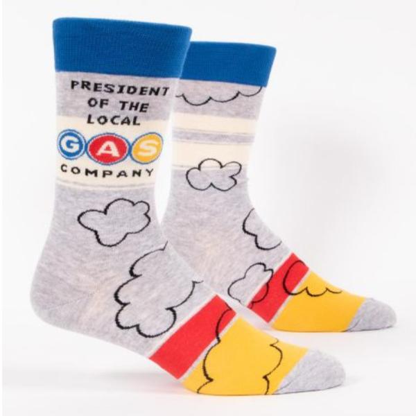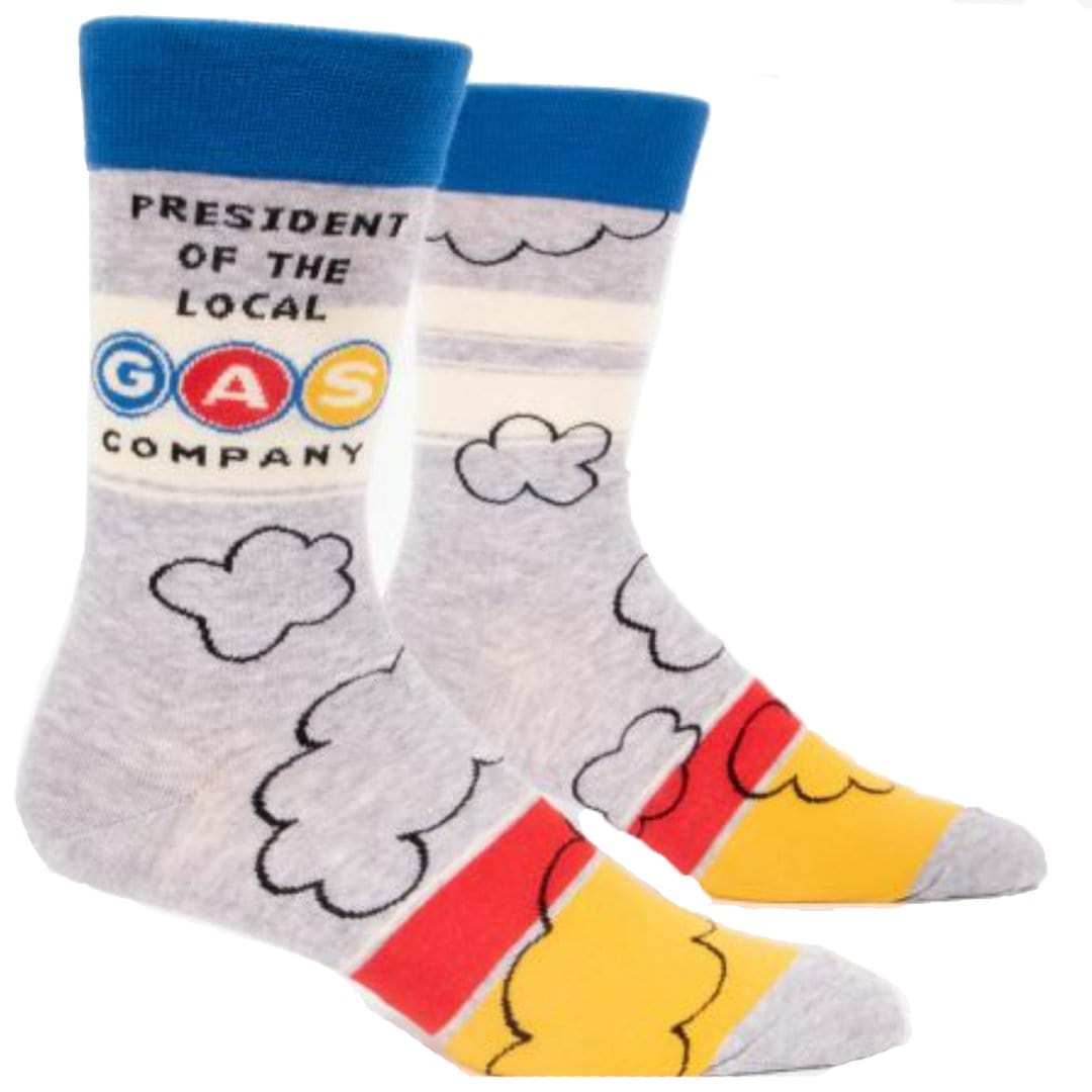 We all know someone who could use these socks - someone who contributes to the destruction of the ozone with their self-created farts!  These fun President of the Local Gas Company Socks embrace the fun [or gas] in all of us!  These socks are sure to be a hit - the "gas" of the party.