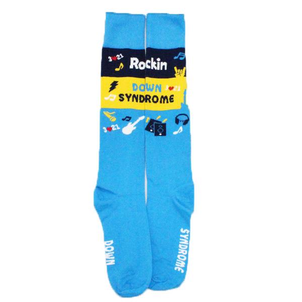 Our co-founder and inspiration, John Cronin, has Down Syndrome and everyday demonstrates what people with Down Syndrome can do. He wanted to do something to raise awareness, so after helping to design the original Down Syndrome Awareness Sock, John then inspired the Rockin' Down Syndrome – Unisex Knee High Socks These  blue socks come with the words “Rockin' Down Syndrome” written on the top of the sock and decorated with various musical symbols and 3-21 to recognize National Down Syndrome Day, March 21st.