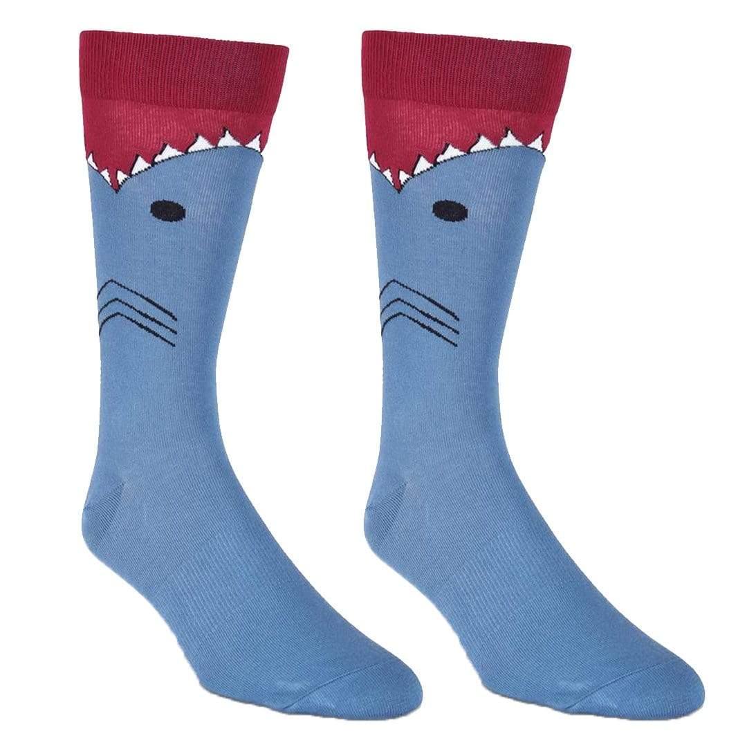 Watch out -- these Shark Socks are ready to bite! A cool blue graphic shark graphic with red trim in his jaws [bloody?] make our Shark Socks a necessary addition to any stylish man's wardrobe!