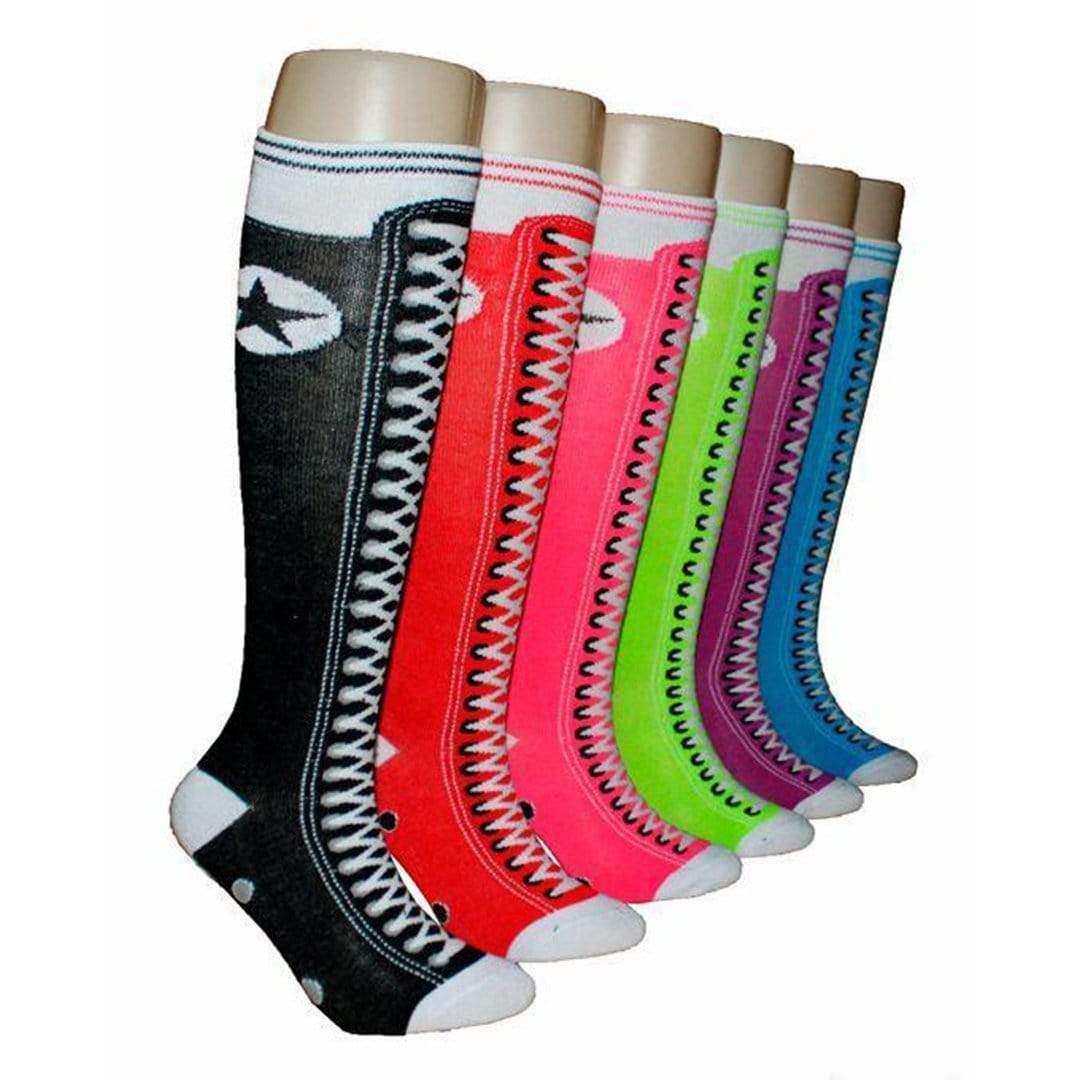 Rock peoples socks in your very own pair of "chuck"-esk Sneaker Knee High Socks.