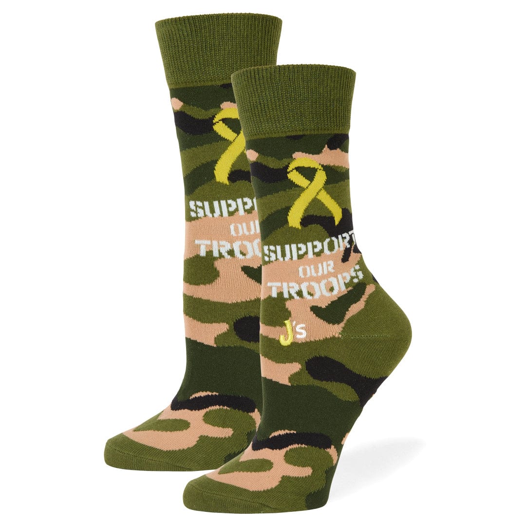 These Support Our Troops Crew Socks are a tribute to all those who serve in the armed forces. Crafted from high-quality materials, they feature a yellow ribbon design to provide a lasting sign of respect and appreciation. Show your pride and support and let our troops know that you are thinking of them.