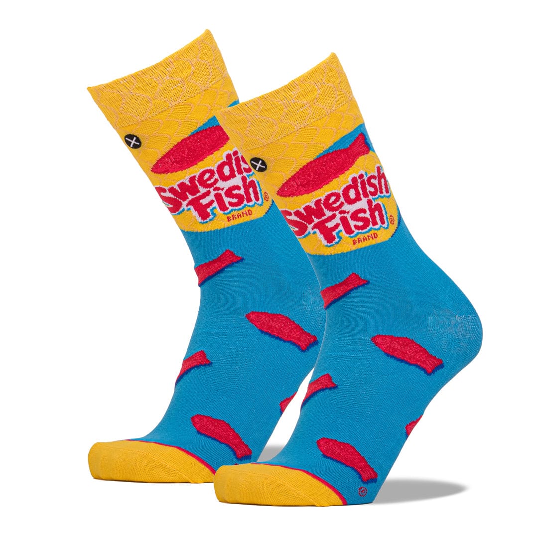 The original soft & chewy red colored candy. The brightly colored Swedish Fish Men's Crew Socks are the fun and cozy treat for your feet.