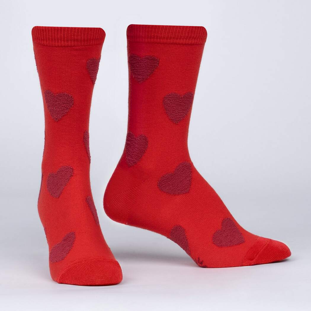 Show your softer side, with these super cozy and soft Sweet Hearts socks. The cute repeating heart pattern is a soft and fuzzy material, perfect for colder cozier days.