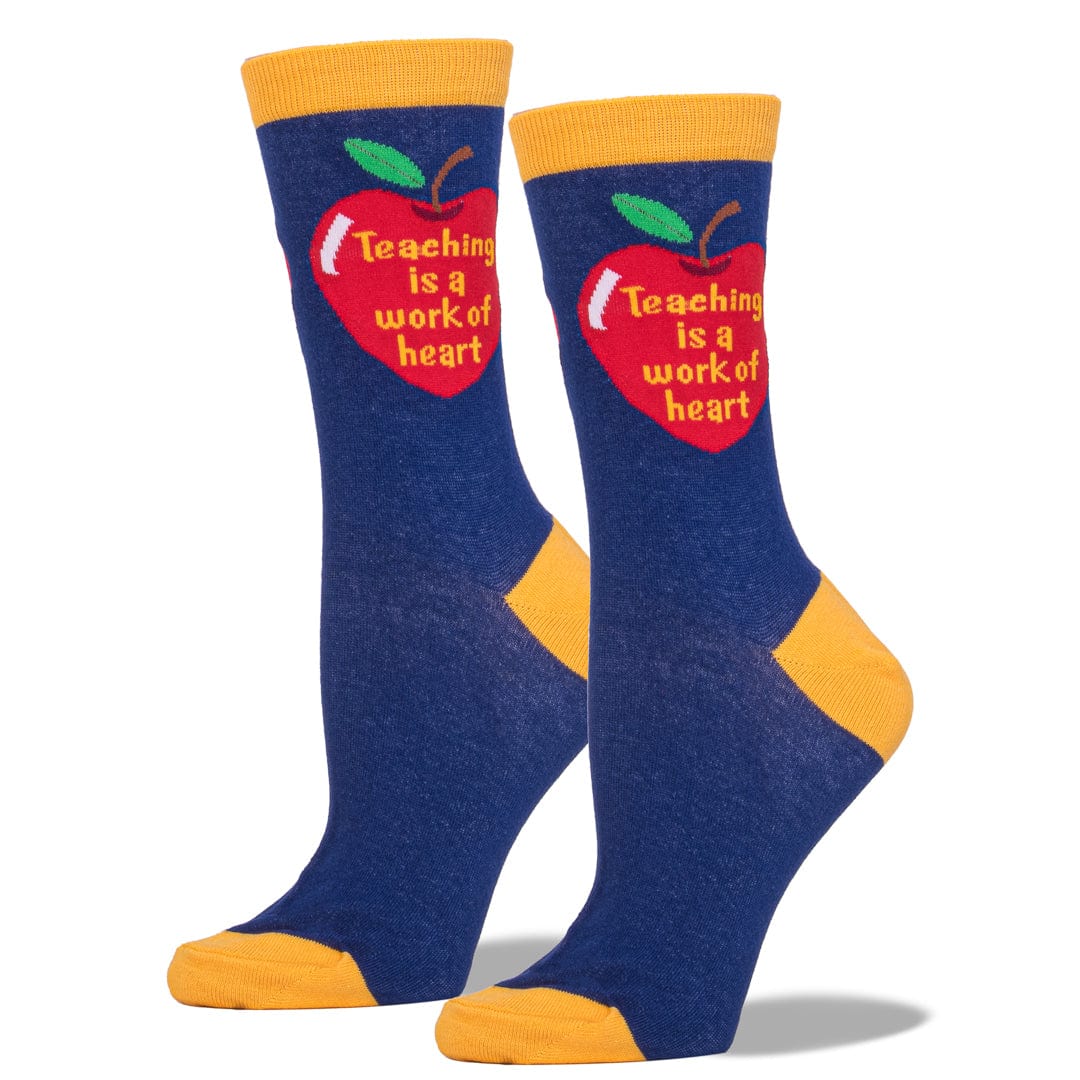 Teaching is a labor of love, Teaching Heart Socks are a great way to remind everyone else. These beautiful socks have a heart shaped apple and say "Teaching Is A Work Of Heart."