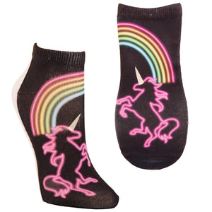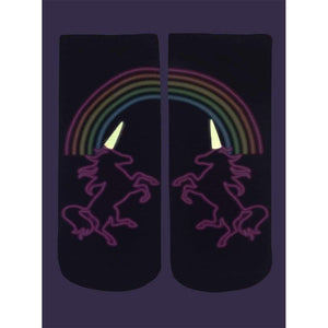 These gorgeous Unicorn Life Glow Ankle Socks are a marvel of design and fantasy. Gaze upon the noble unicorn: so bold, so beautiful. It is said that the image of the unicorn suggests that we open ourselves to infinite possibilities. Adding the unicorn only emphasizes how many possibilities there can be even in something as simple as pulling on a pair of socks.