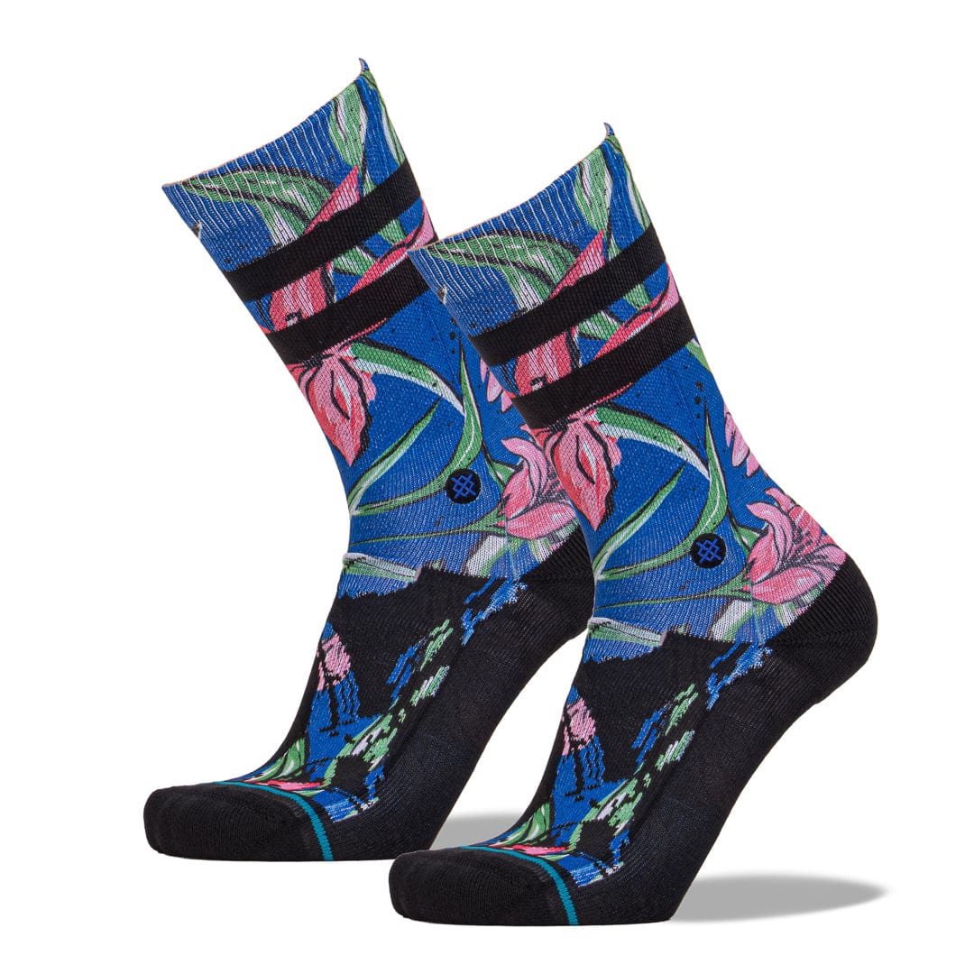They're here - Stance Socks! A pair of socks as fine as a tropical rain forest, Waipoua St Men's Crew Socks are not to be underrated. Tropical florals rooted in black with an extra set of black racing stripes up top... welcome to island of Pau! A fun little poly blend crew with just enough mid-cushion to keep that vacation vibe alive, topped off with the iconic Stance logo.